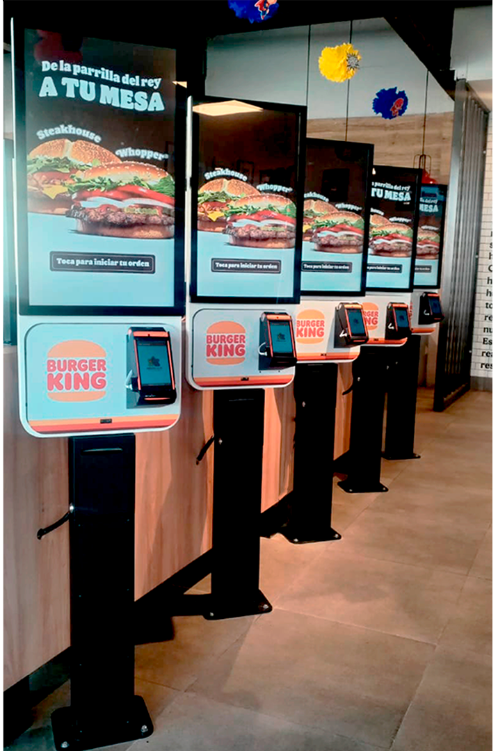 Kioscos para tomar pedidos, realizar pagos y personalizar opciones de comida, optimizando el flujo de trabajo y permitiendo al personal enfocarse en la preparación y servicio al cliente.